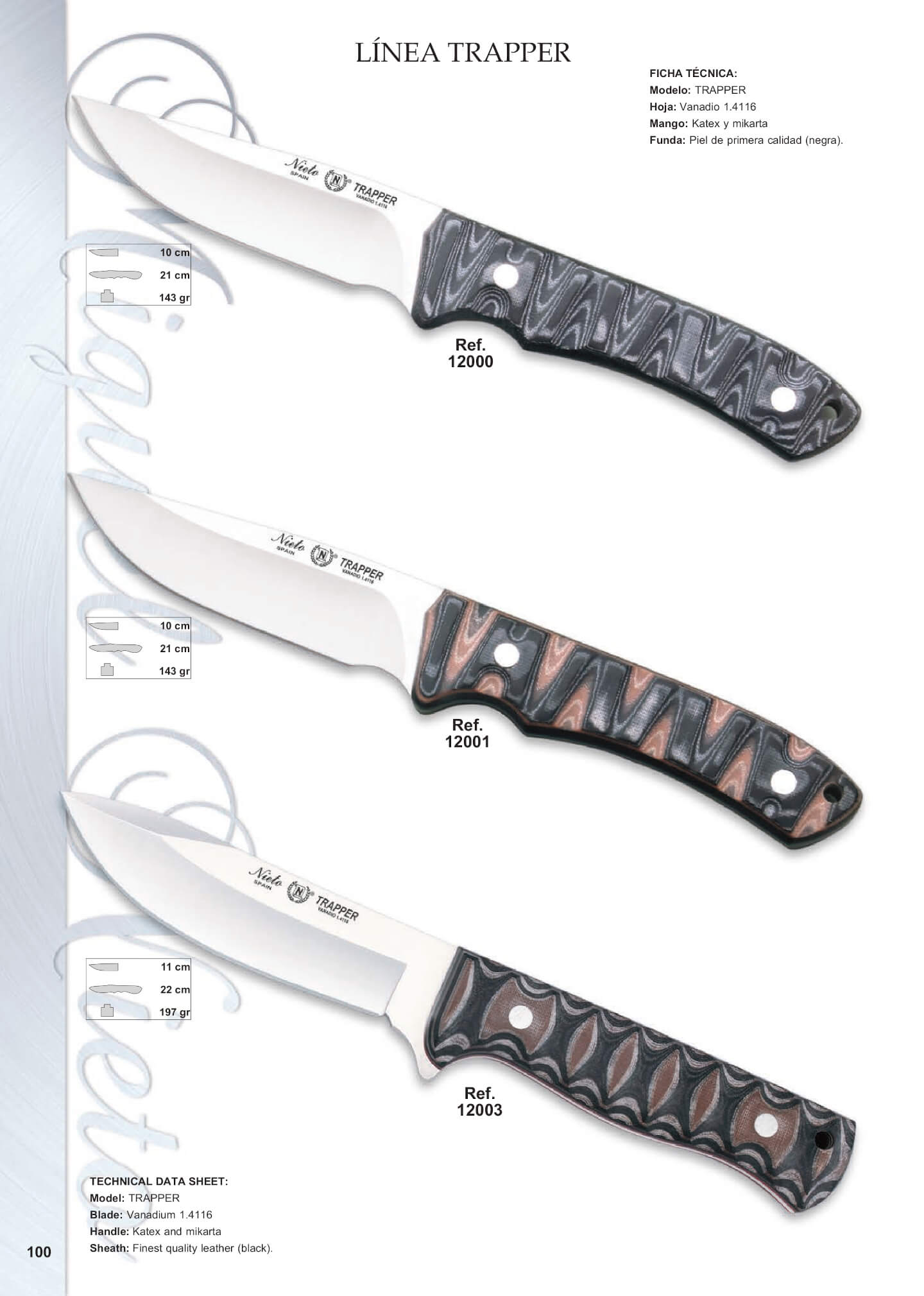 Comprimento da folha: 10 cm. Comprimento total: 21 cm. Peso: 143 grs.