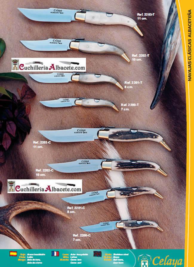 2203-C, 2202-C, 2201-C, 2200-C Canivete clássico Albacete com lâmina de aço inoxidável e cabo de chifre de veado.