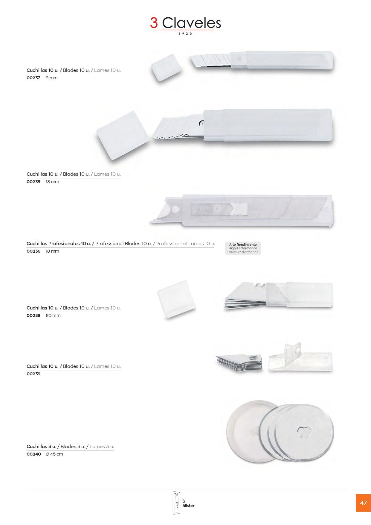 Pacote de 3 lâminas para cortador rotativo 45 mm 3 Claveles