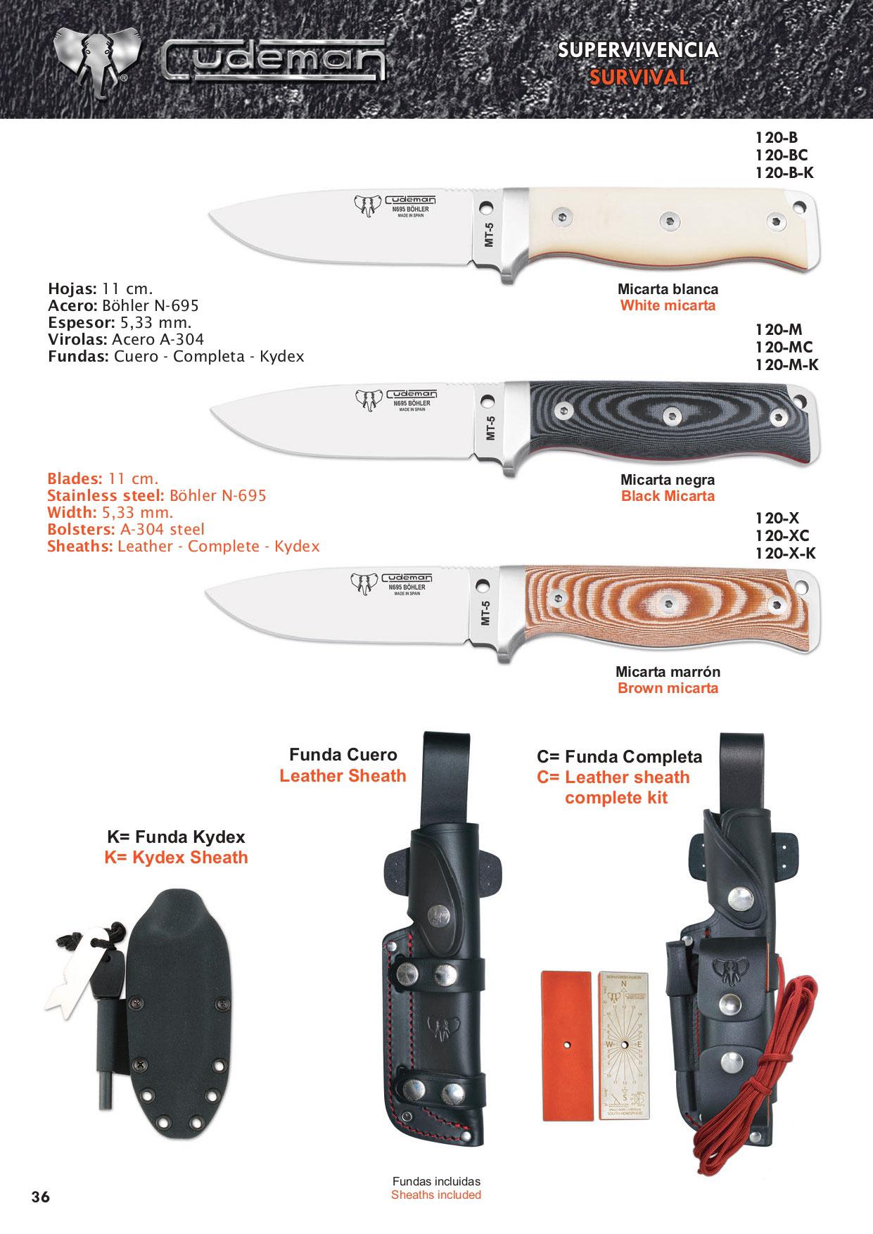 - C = Estojo de couro de múltiplas posições com kit de sobrevivência.