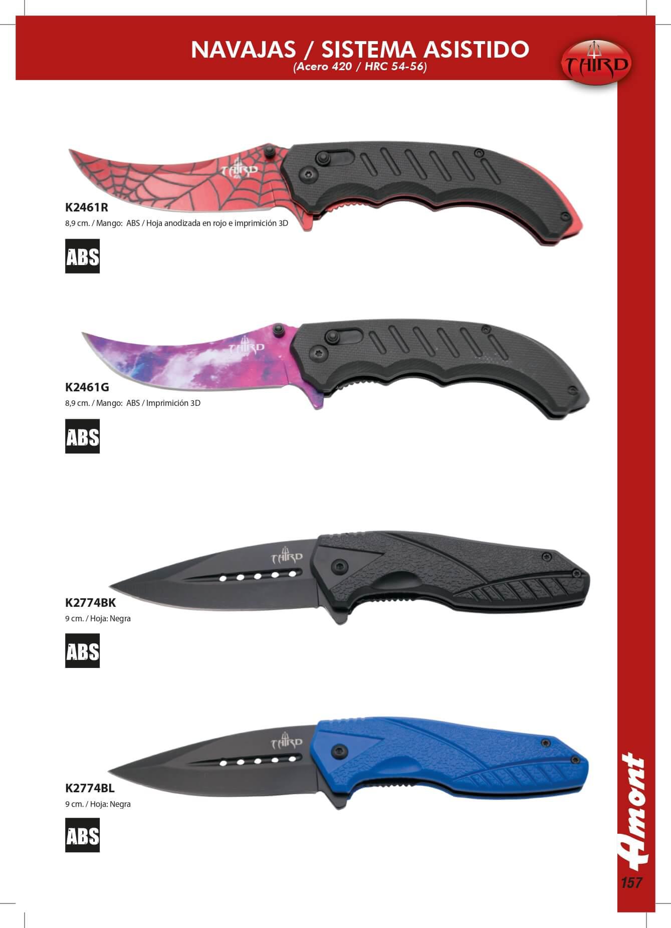 Canivetes com sistema de abertura assistida. Cabo em ABS.