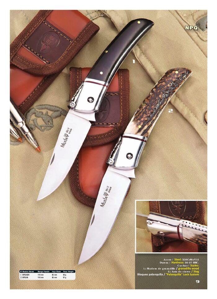 Facas "palanquilla" em duas versões, chifre e madeira de granadilho. Com uma linda faixa de cabeça em vermelho na tampa de alumínio. Medidas -> alça de 11 cm e lâmina de 8,5 cm.