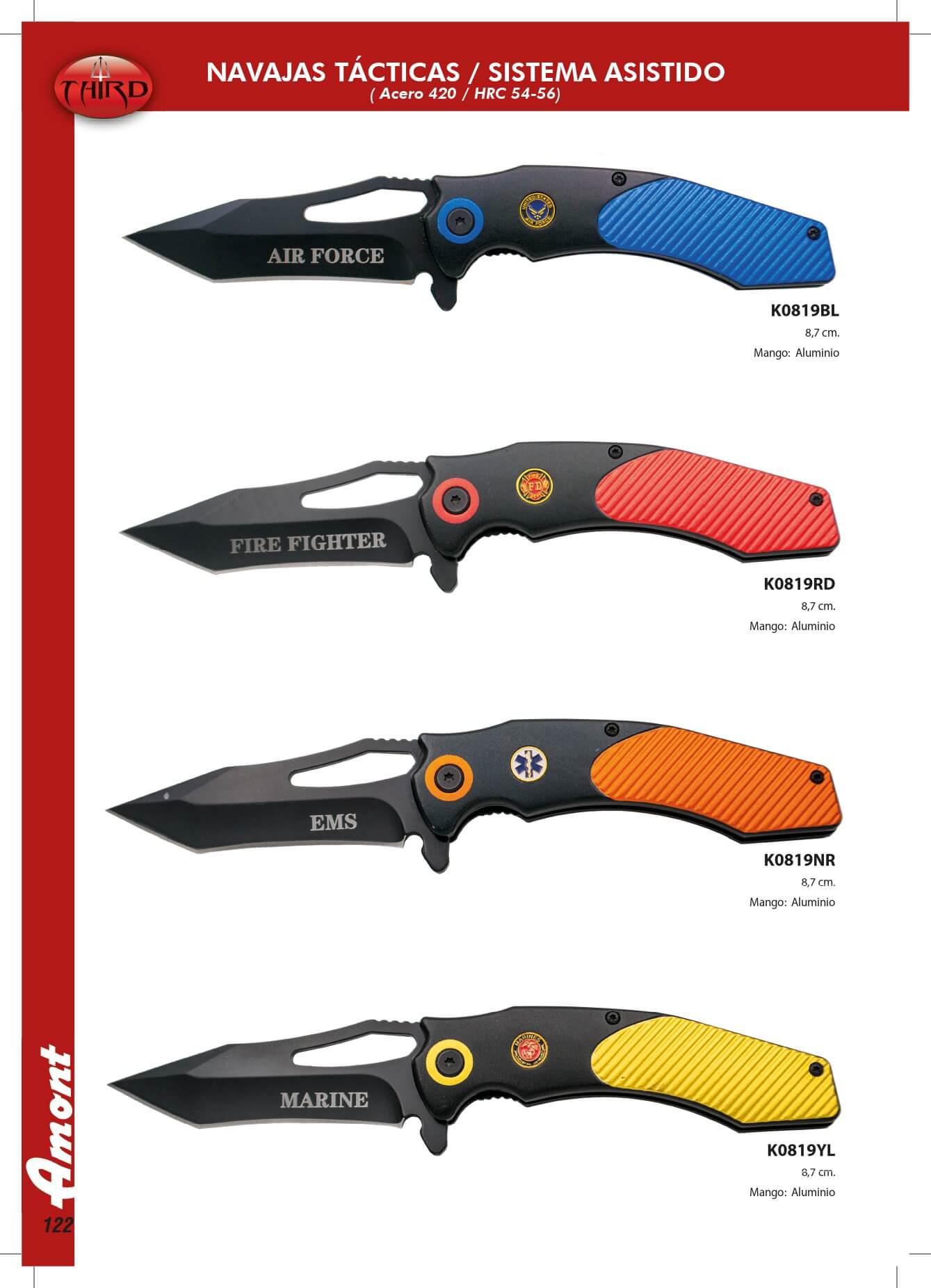 Canivetes táticos com cabo de alumínio. e lâmina de aço de 8,7 cm 420. Inclui bainha de nylon.