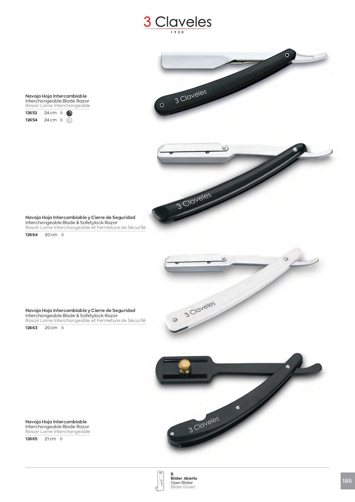 Navalha de barbeiro com lâmina intercambiável, 3 Claveles, cabo b...