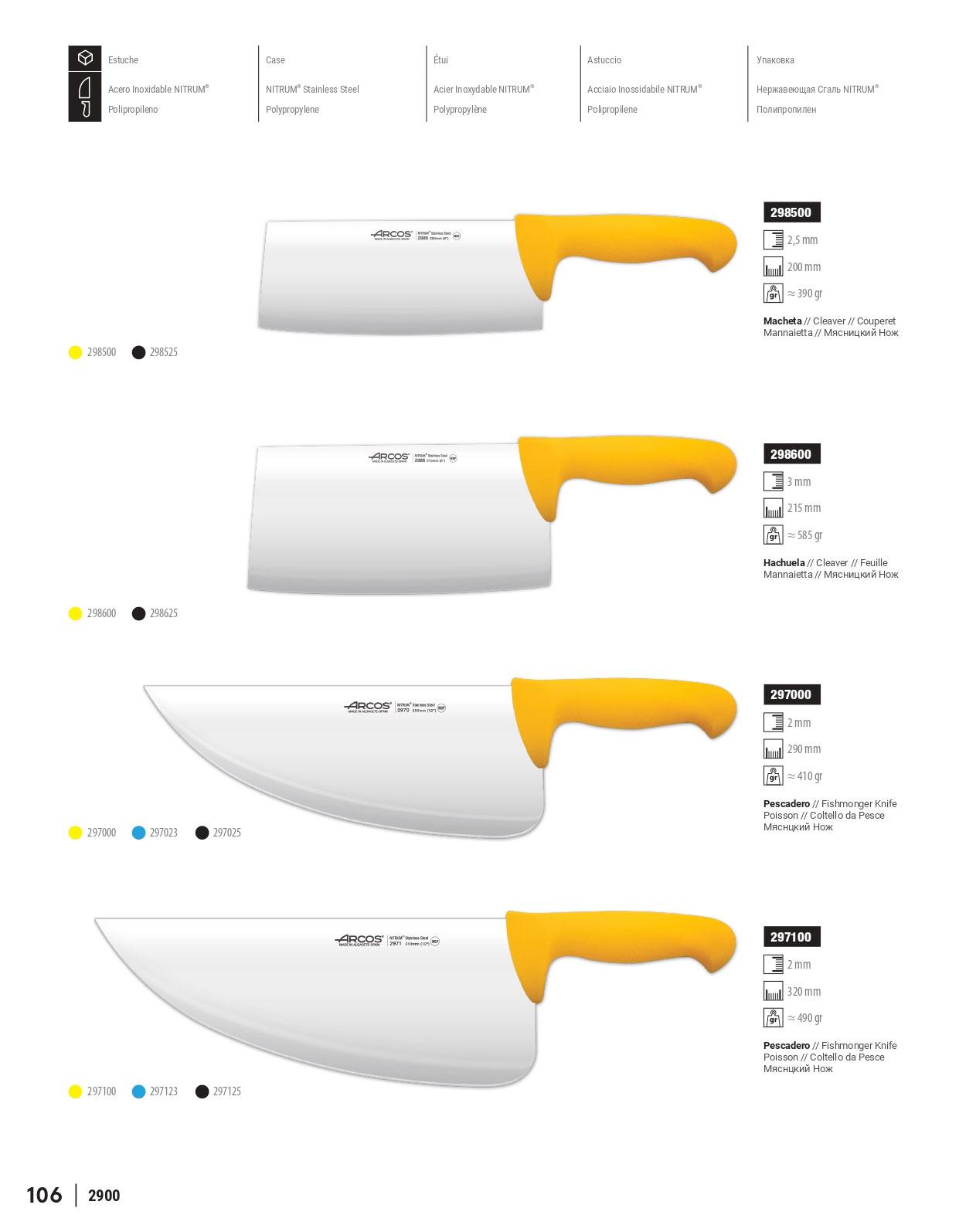 Cuchillos profesionales de carnicero y pescadero. Hoja de acero inoxidable, mango de polipropileno.