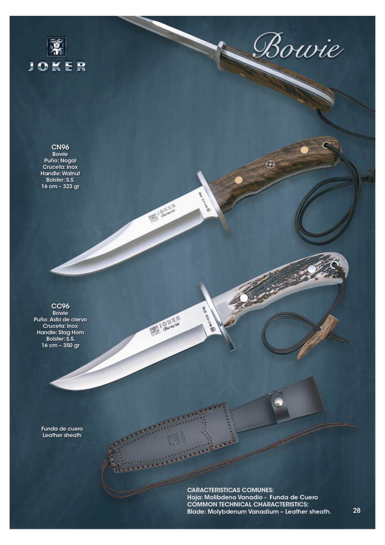 Mango de asta de ciervo o madera de nogal.