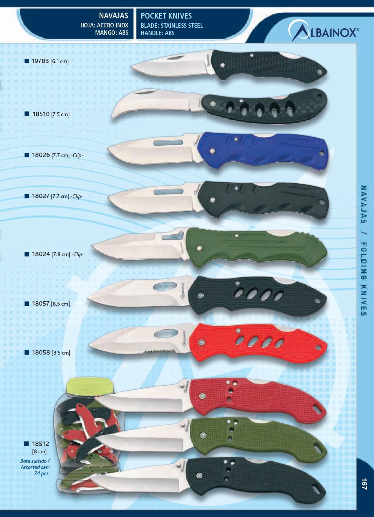 Navaja ALBAINOX, cachas de ABS azul, con clip y hoja de 7.7 cm