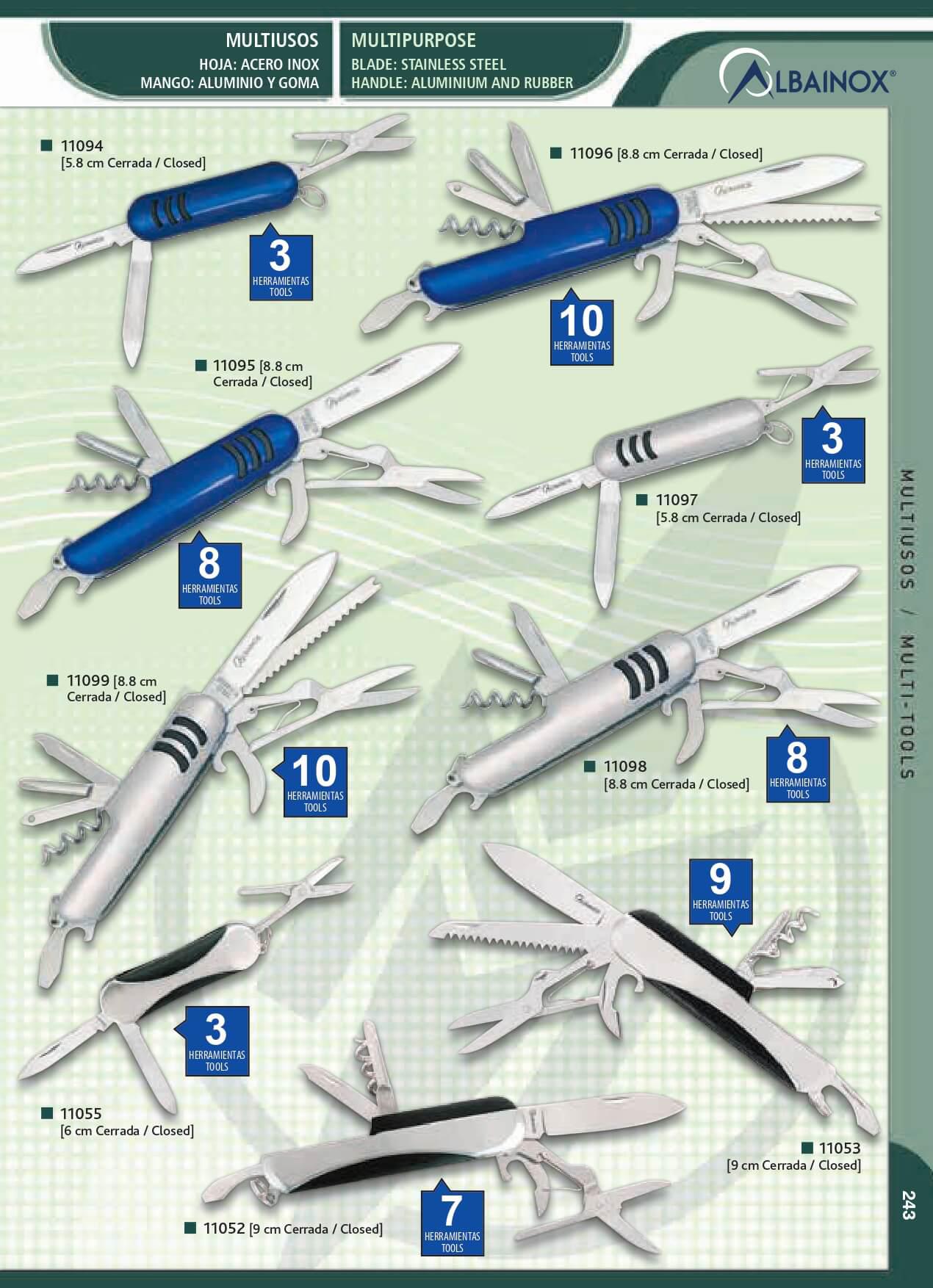 Navaja suiza de tres usos con mango de aluminio y longitud cerrad...