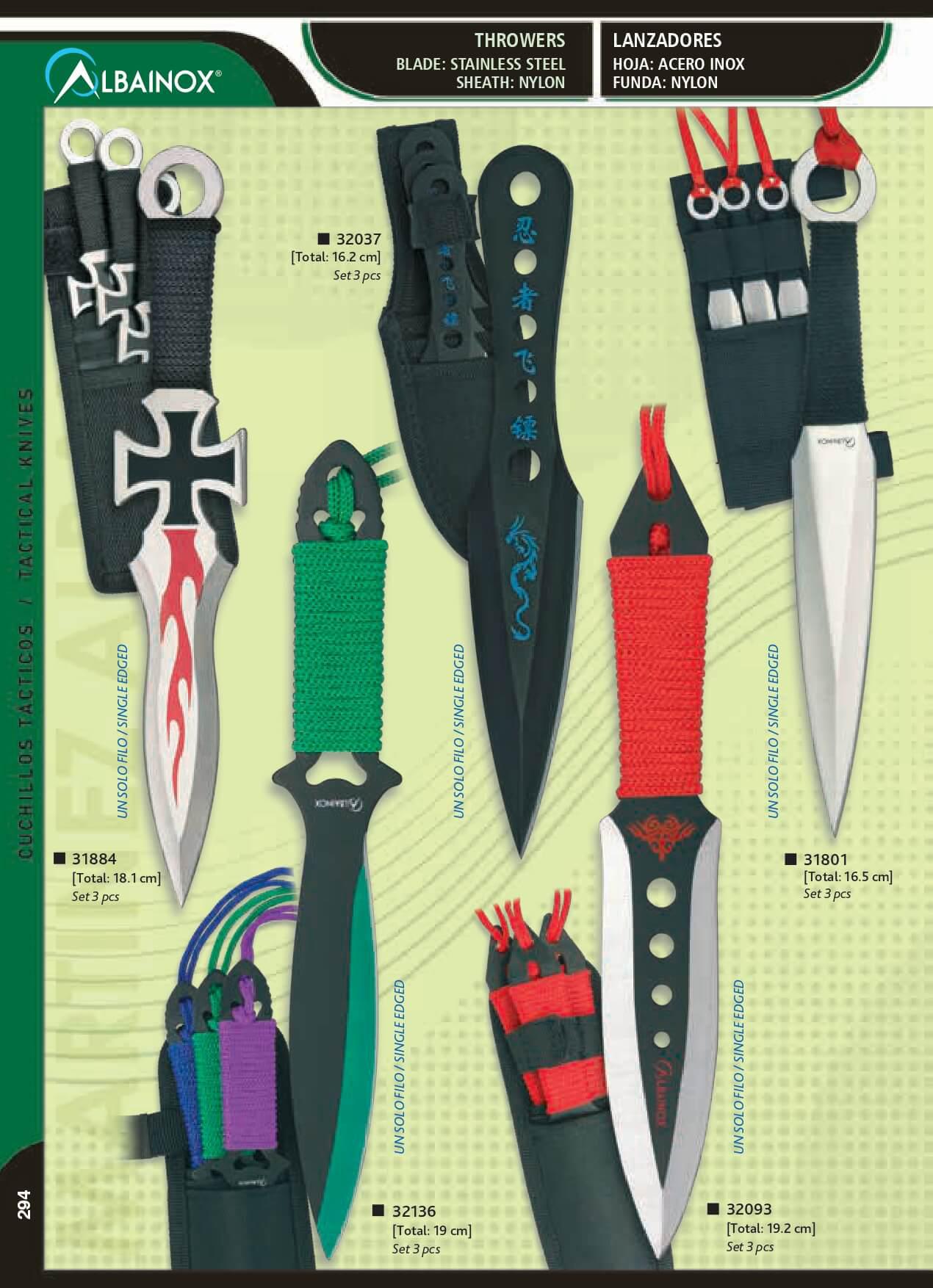 Set de tres cuchillos lanzadores con cruz de Albainox y longitud ...