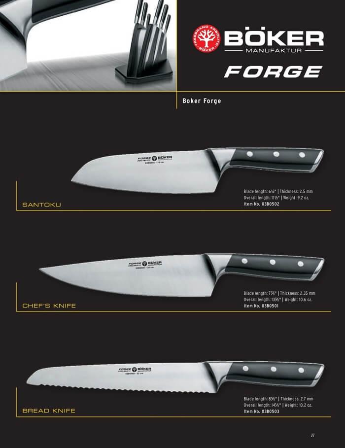 Esta innovadora serie de cuchillos de cocina forjados de Boker combina diseños innovadores y dinámicos con una selección clásica de materiales, a un nivel de calidad superior. Las atractivas y llamativas líneas de diseño distinguen esta serie significativamente de todas las demás series de cuchillos de cocina, sin llegar a ser demasiado llamativo.
