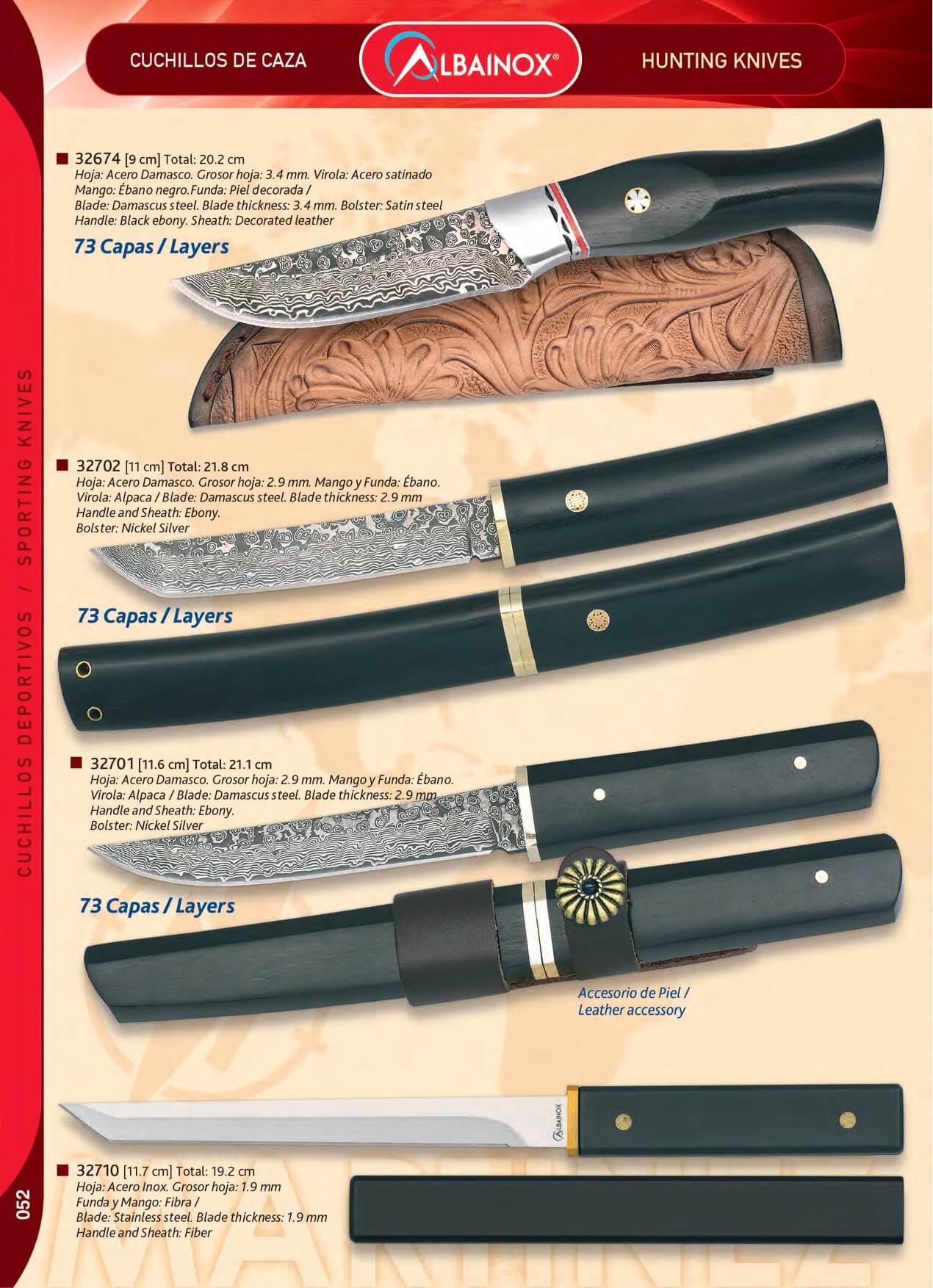 Cuchillo de caza con hoja de acero damasco de 9 cm y mango de éba...