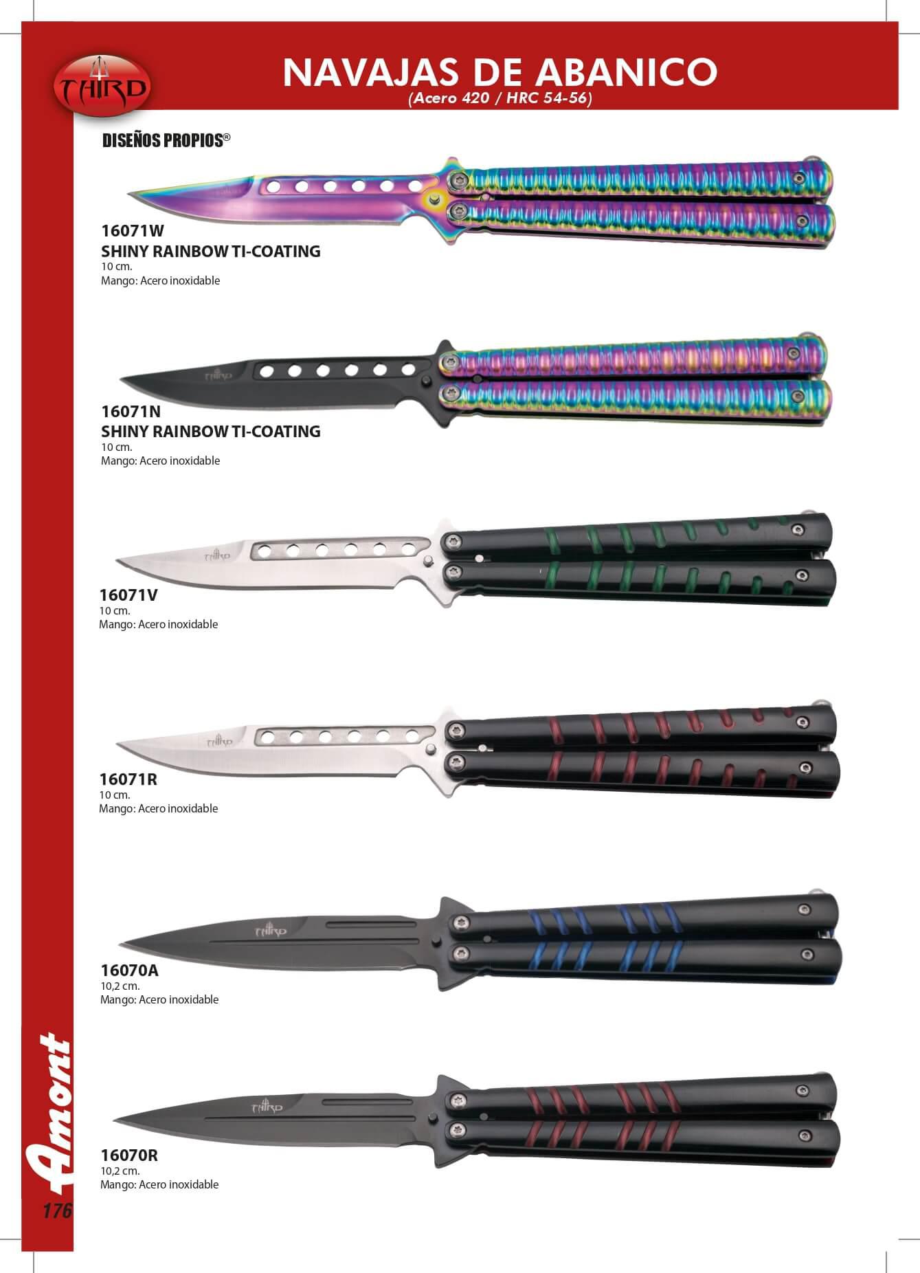 Navaja mariposa de 10 cm con mango de acero inoxidable multicolor.