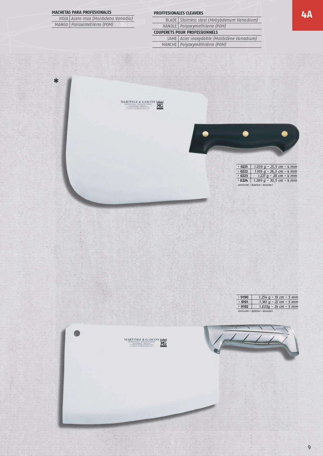 Macheta Galicia con hoja de 240 mm y mango enterizo Martinez y Ga...