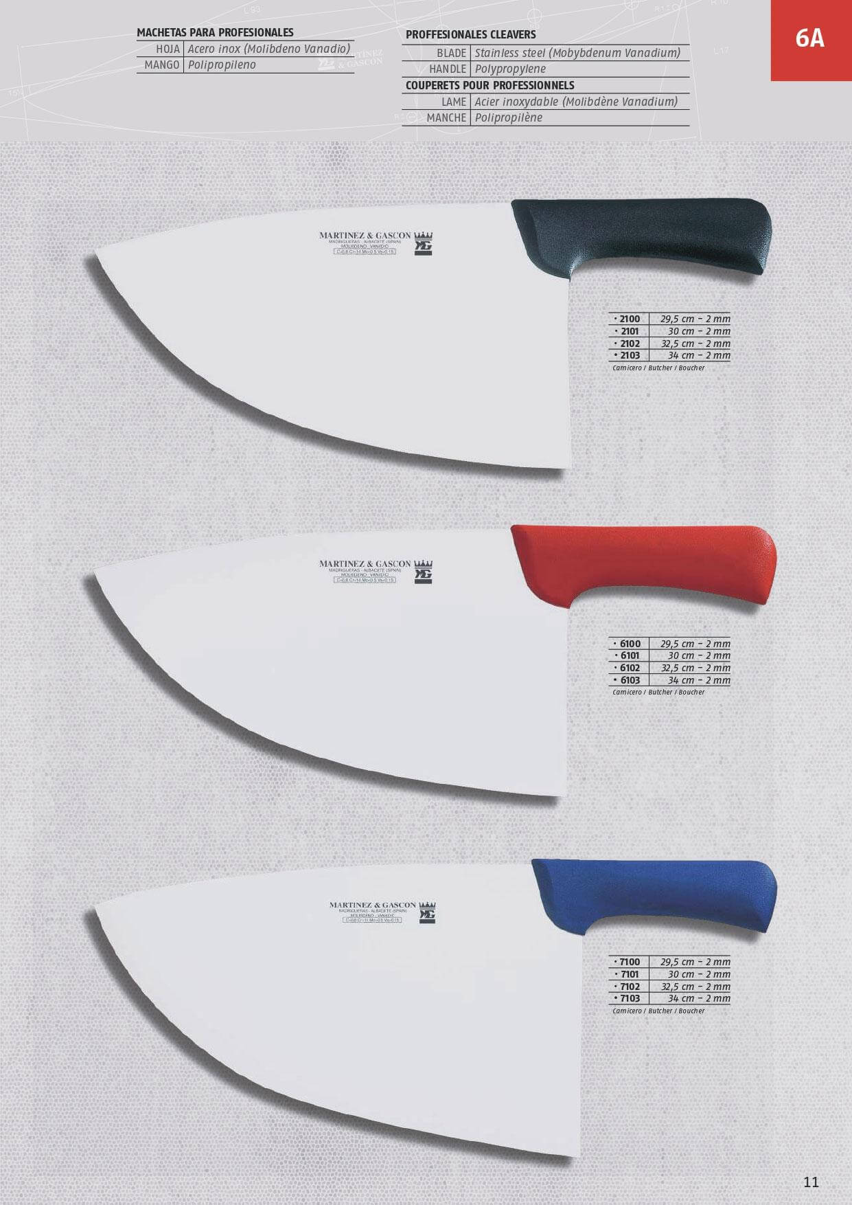 Hacha filetera media luna con hoja de 30 cm y mango de fibra roja