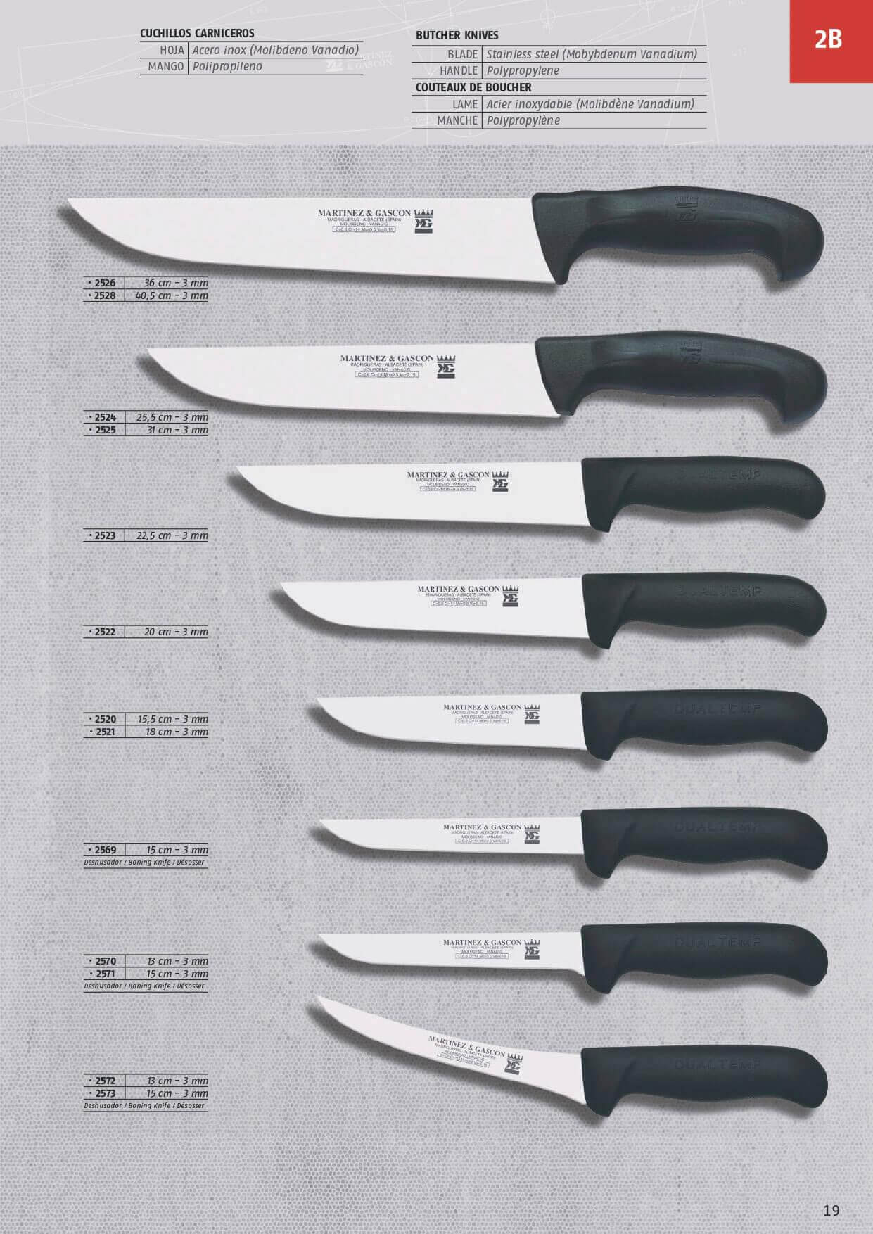 Hoja de acero inox. Mango de polipropileno.