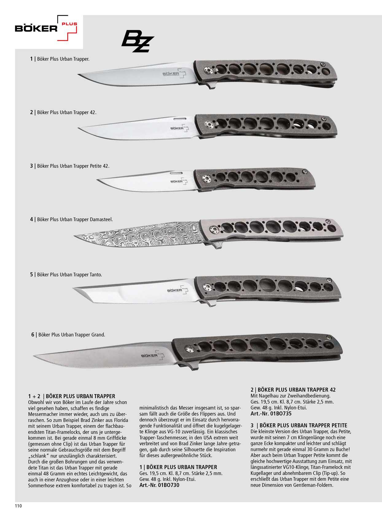 01BO780 Urban Trapper Petite Peso: 30 gr. Hoja de VG-10, mango de titanio. Apertura manual. Bloqueo: framelock