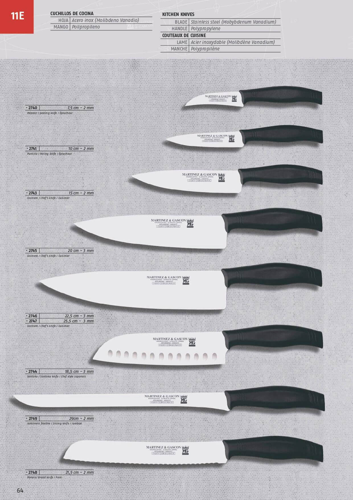 Cuchillos cocina. Hoja de acero inox. Mango de polipropileno.