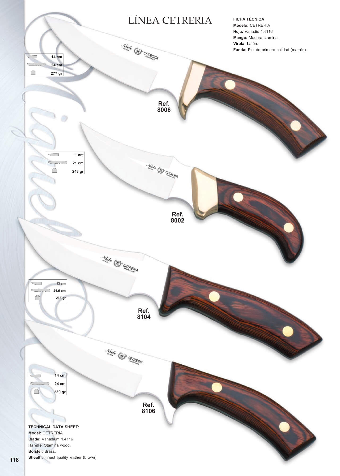 Longitud de hoja: 13 cm. Longitud total: 24.5 cm. Peso: 263 gr.