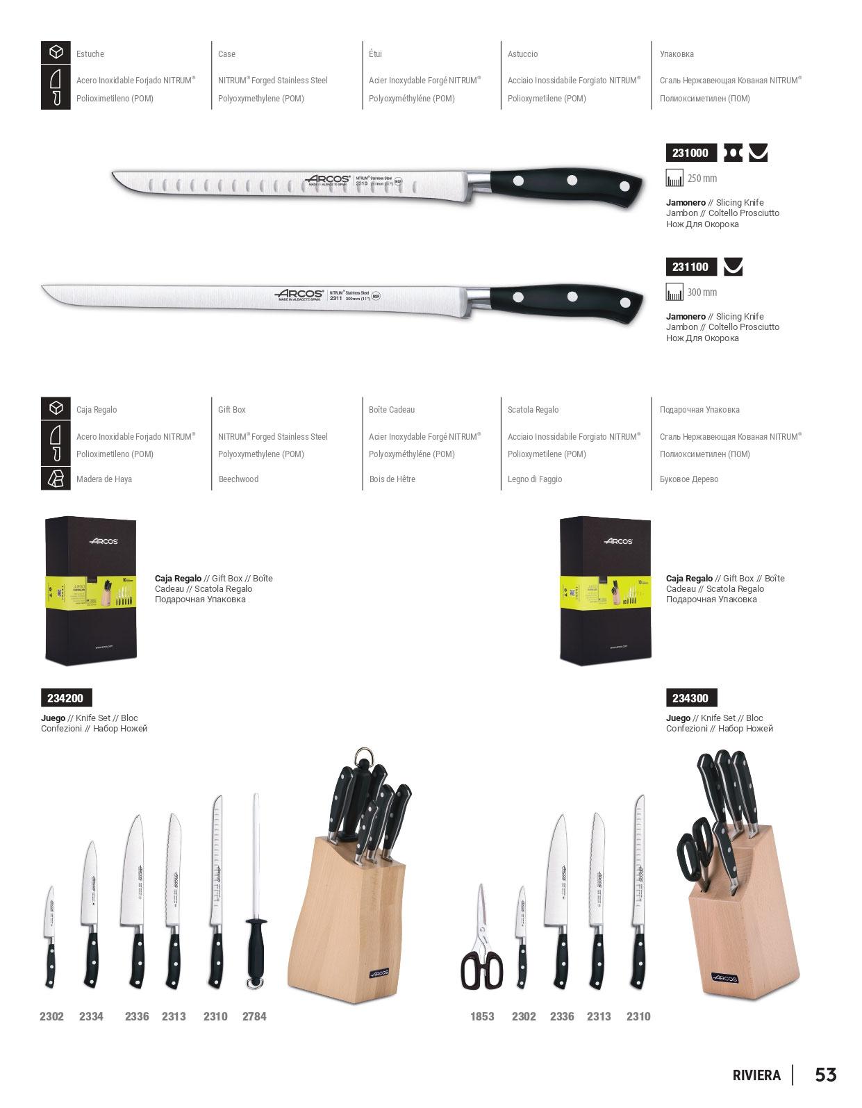 Cuchillos de cocina. Hoja de acero inoxidable forjado. Mango POM. Cuchillo jamonero y tacos de cocina (tacoma). Modelo RIVIERA.