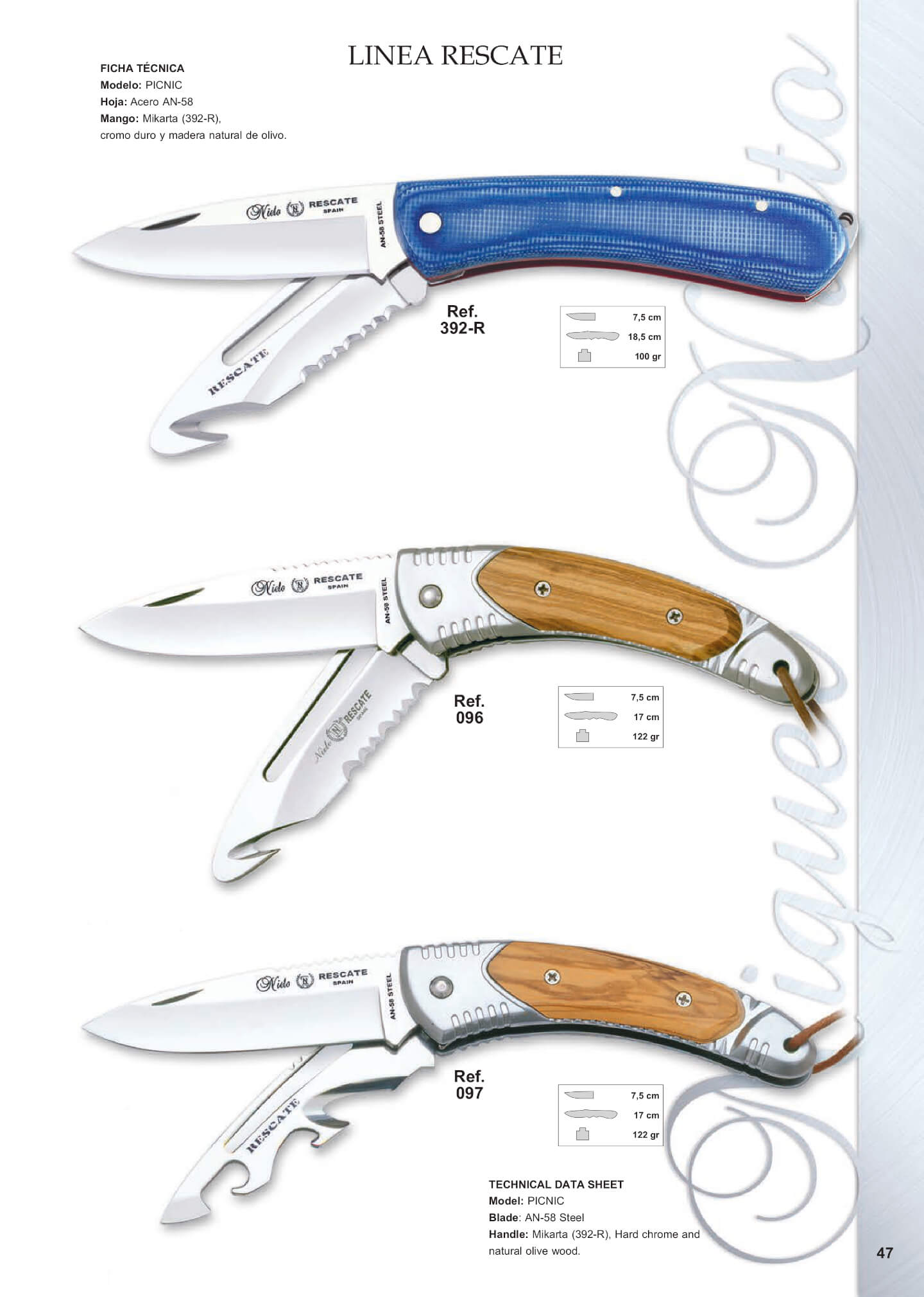 Navajas multiusos Nieto Rescate.Navajas pequeñas con doble hoja de acero AN-58. Con agujero para cordón fiador