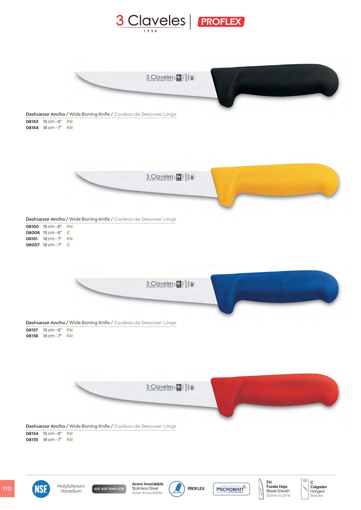 Cuchillos Estrechos de Carnicero Profesionales. Acero Inoxidable y mango de Proflex