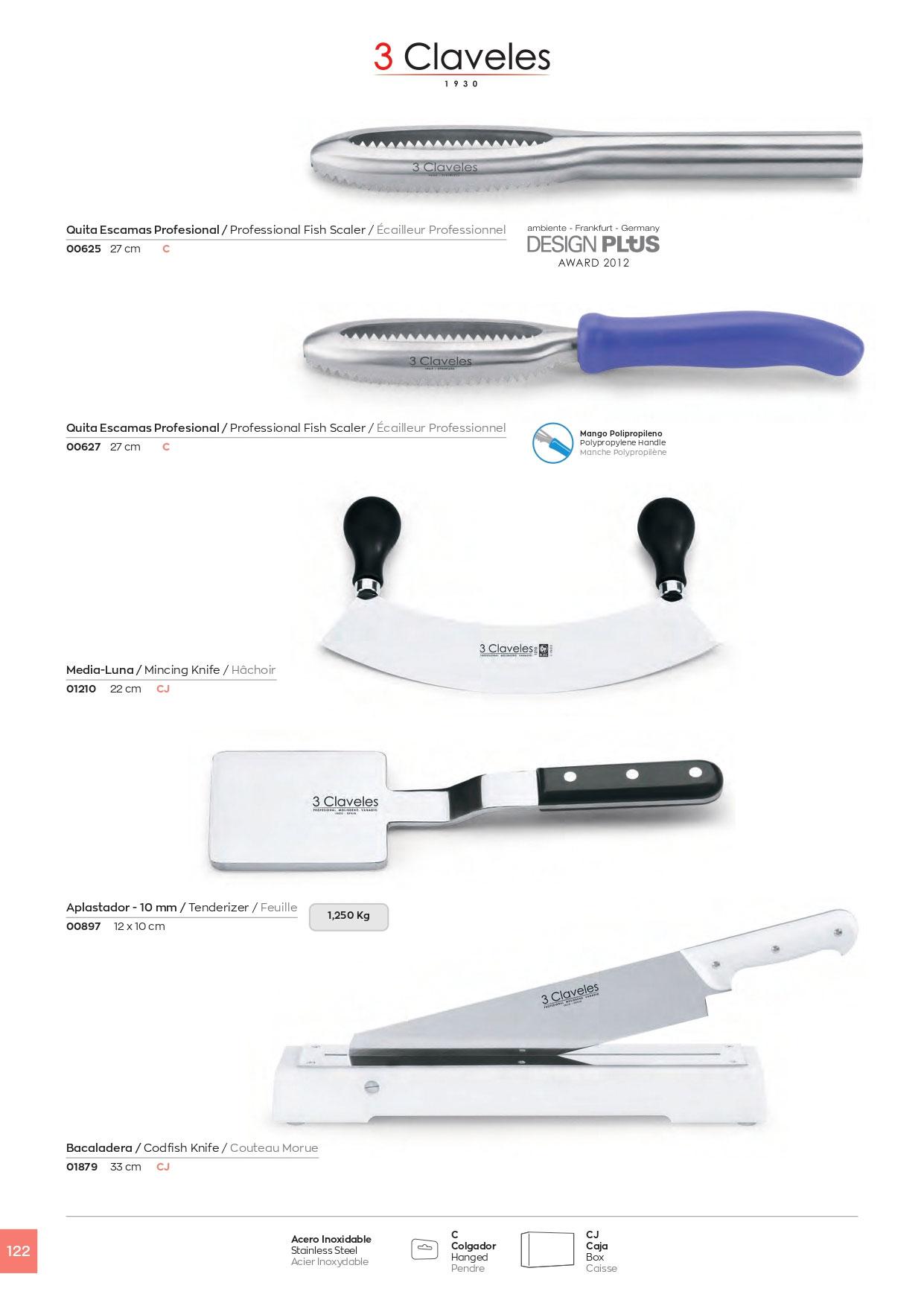 Utensilios Cocina. Quita escamas profesional. Cuchillo Media-luna. Bacaladera.