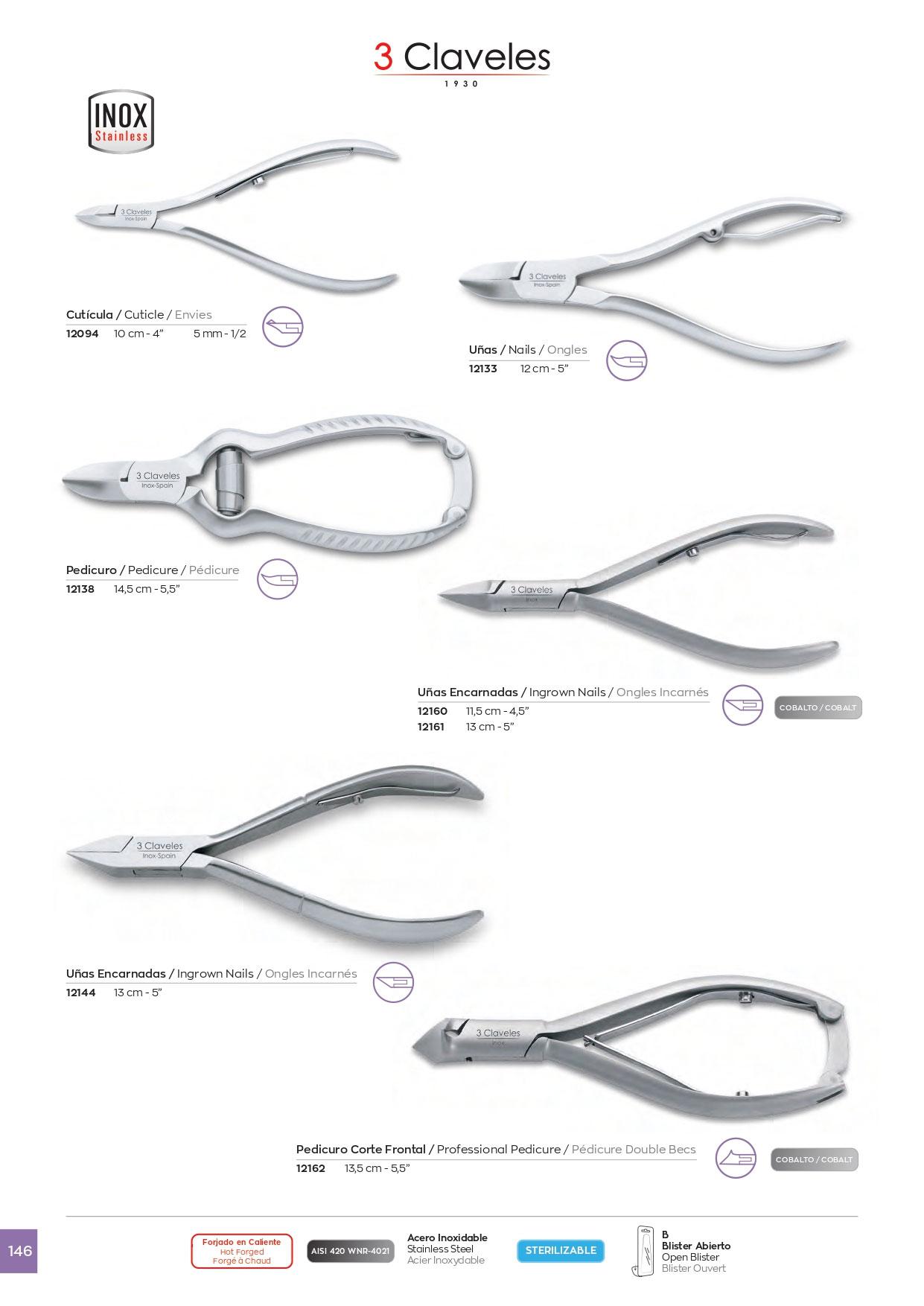 Alicate para uñas corte frontal acero inoxidable y cobalto 3 Clav...