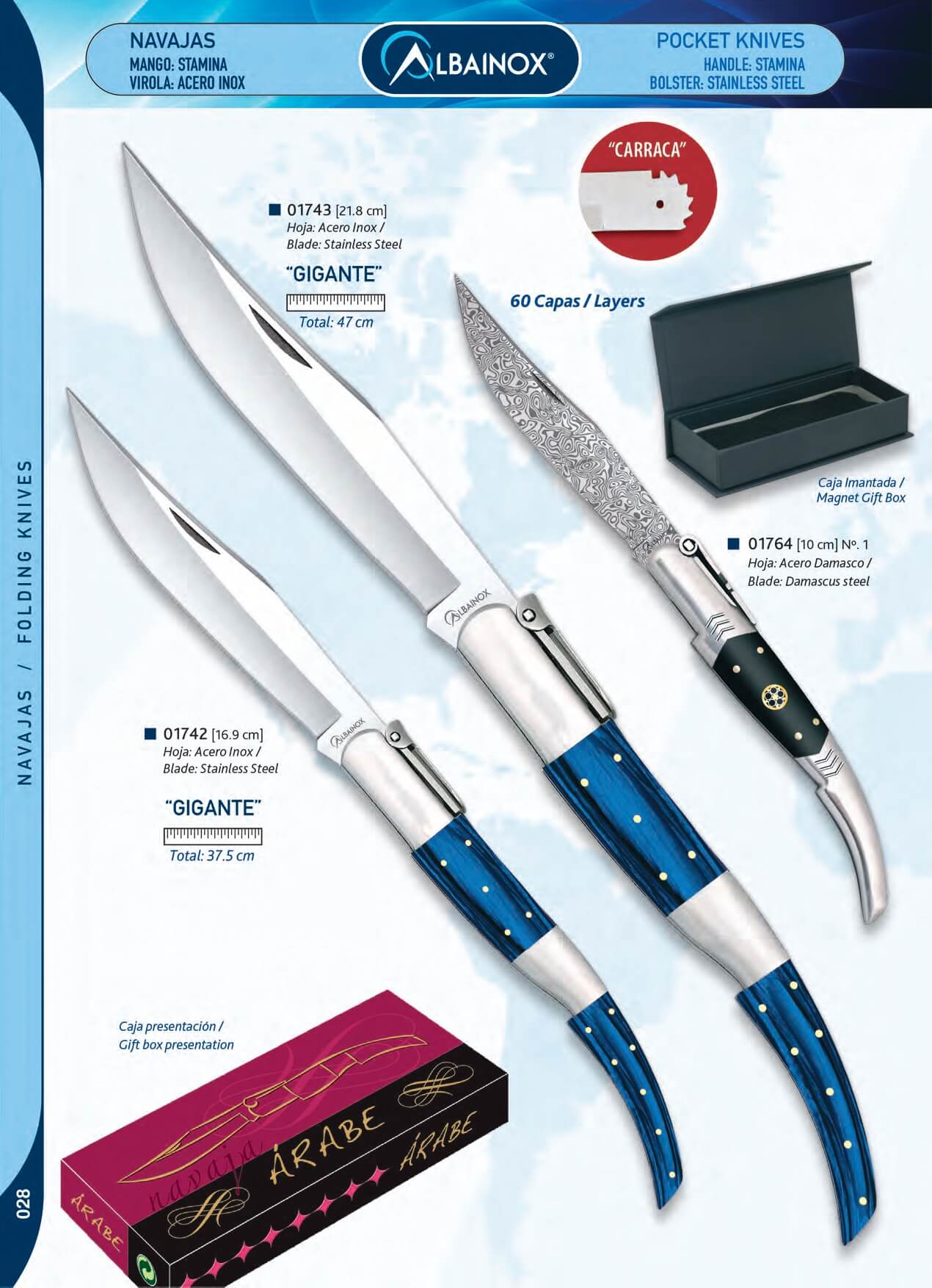 Navaja árabe gigante con mango de estamina azul y acero hoja de 2...