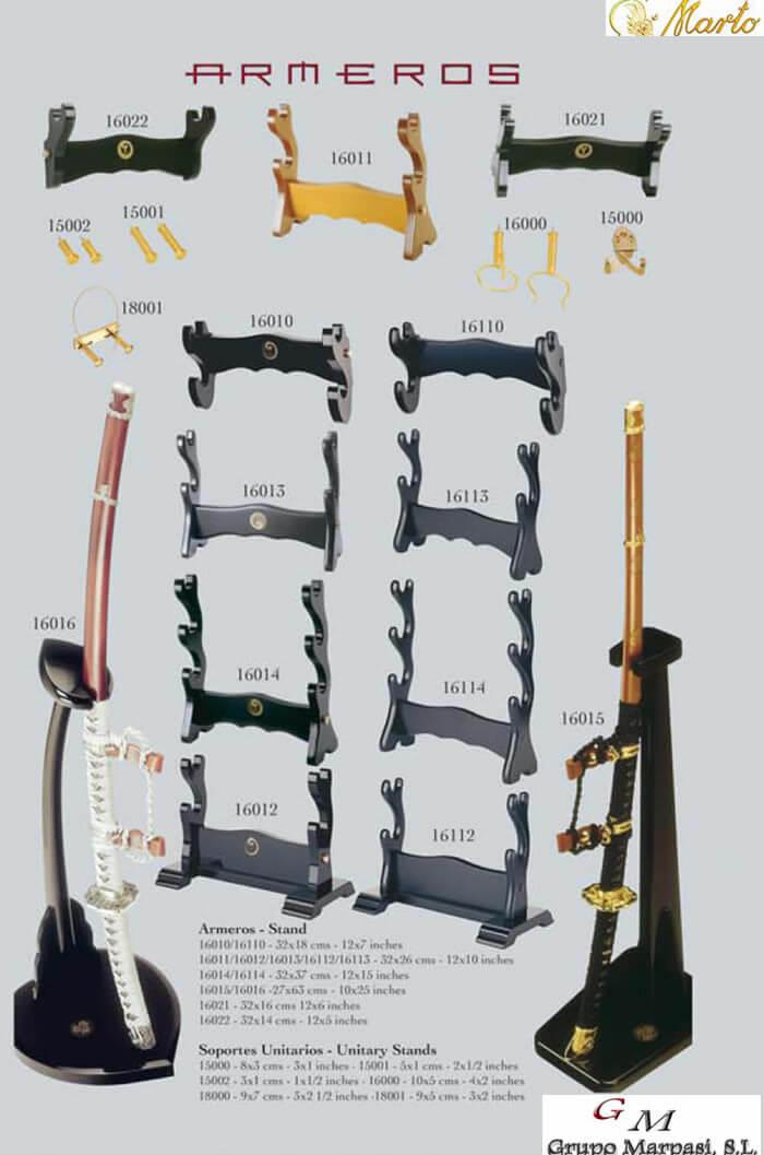 Armero de sobremesa madera con acabado negro para dos espadas