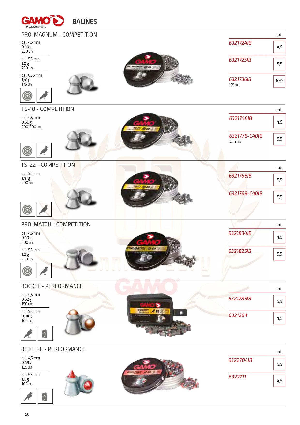 Balines calibre 4.5 y 5.5 de la marca Gamo.