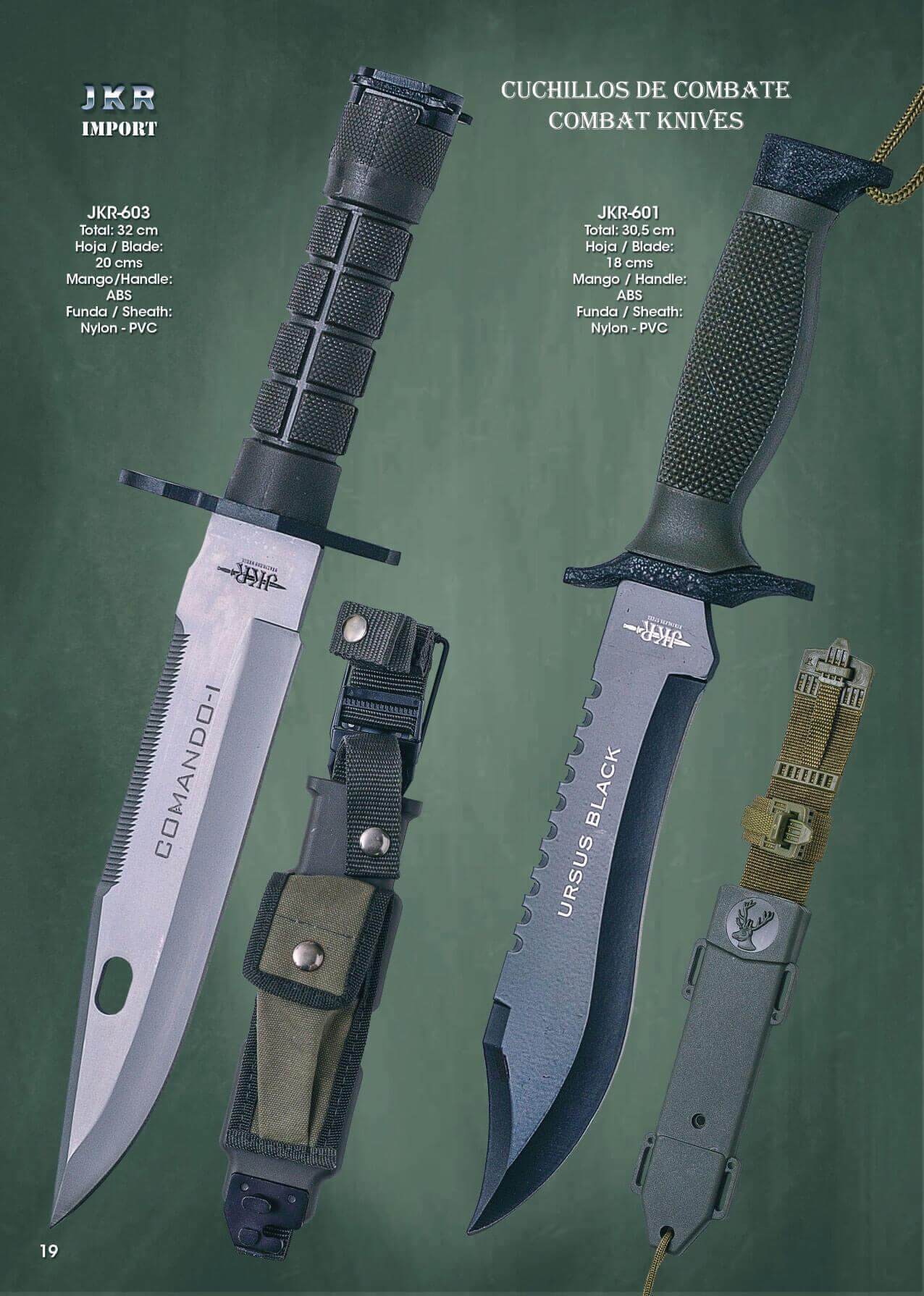 JKR-603: Cuchillo Comando I, con hoja de 20 cm, longitud total de 32 cm, mango de ABS y funda de Nylon y PVC.