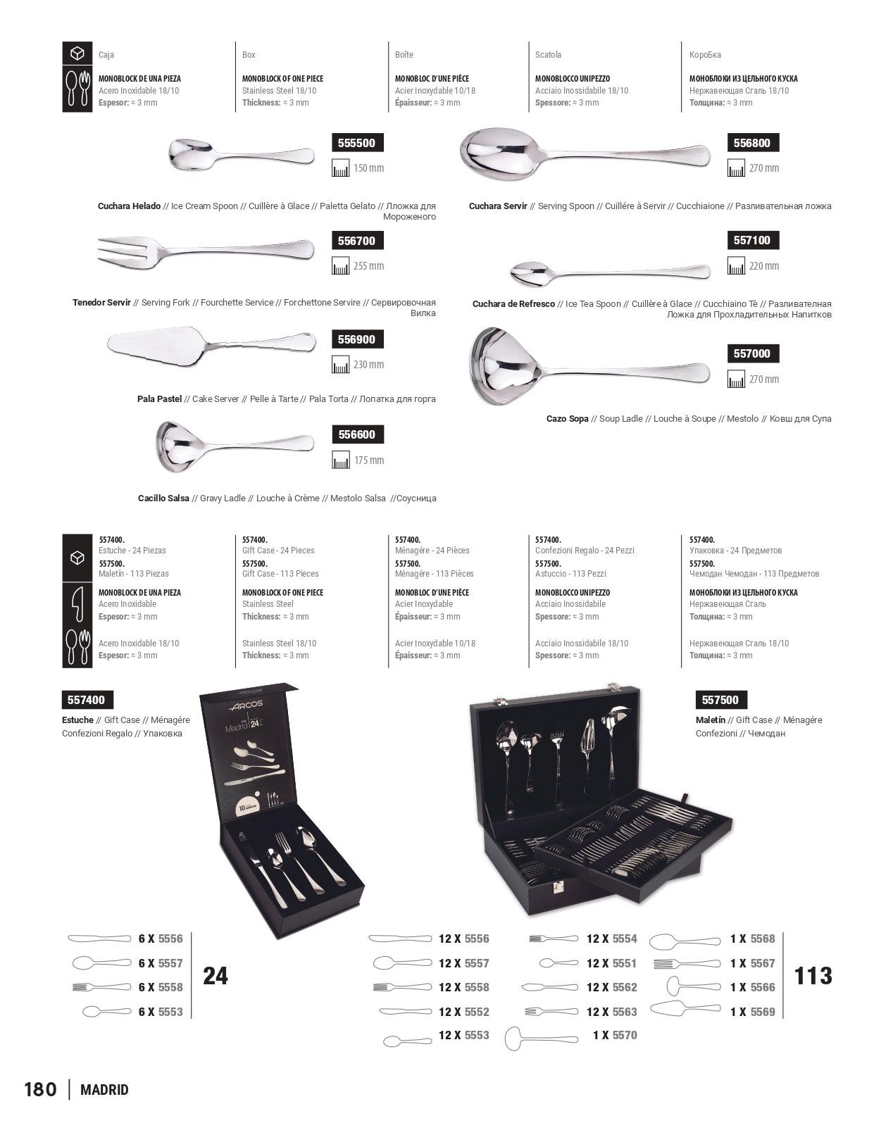 Cuberteria, 113 piezas. Acero inoxidable. Monoblock de una pieza. Presentación en un maletin. Modelo Madrid.