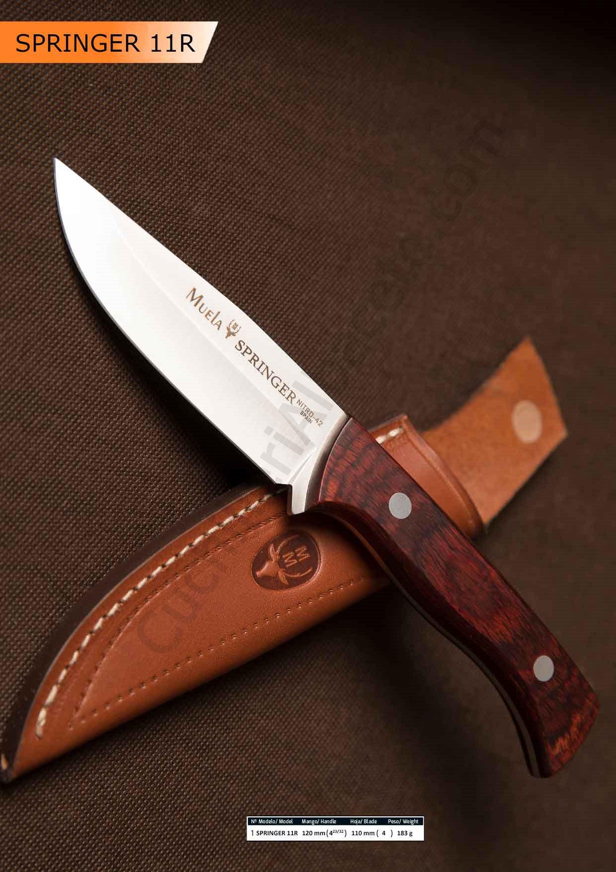 Cuchillo enterizo fabricado en acero NITRO-42 con cachas de madera prensada coral. Diseñado para un corte quirúrgico. Longitud de hoja 11 cm. Espesor de hoja 3.75 mm.