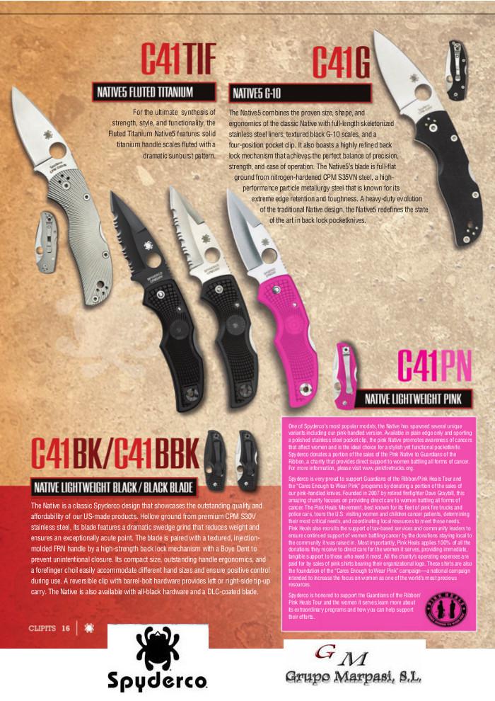 Spyderco apoya la Organización Y-ME National Breast Cancer con donaciones basadas en la venta de cada cuchillo - navaja Native Pink vendido.