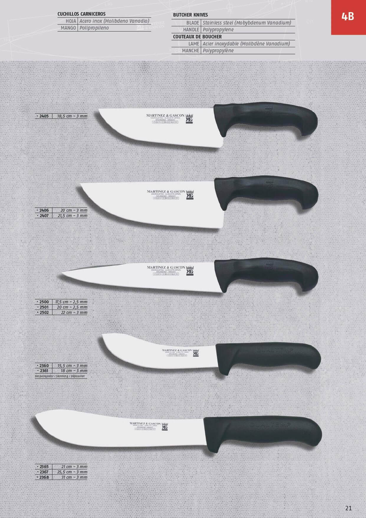 Cuchillos carnicero con hoja de acero inoxidable (Molibdeno Vanadio) y mango de Polipropileno.