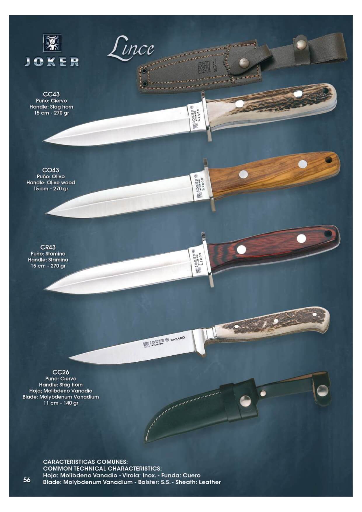Hoja: acero MoVa 1.4116. Virola: acero inoxidable. Funda: cuero.