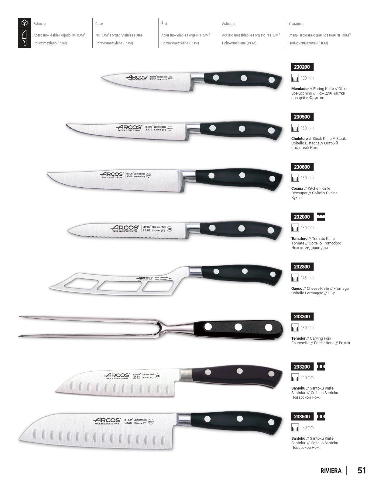 Cuchillos de cocina. Hoja de acero inoxidable forjado NITRUM, mango POM. Modelo RIVIERA.