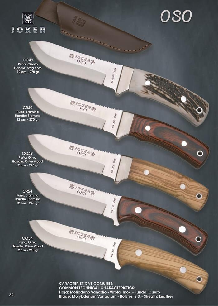 Cuchillos de caza Joker Oso con hoja de acero Molibdeno Vanadio de 12 cm. Virola de acero inoxidable. Funda de cuero.