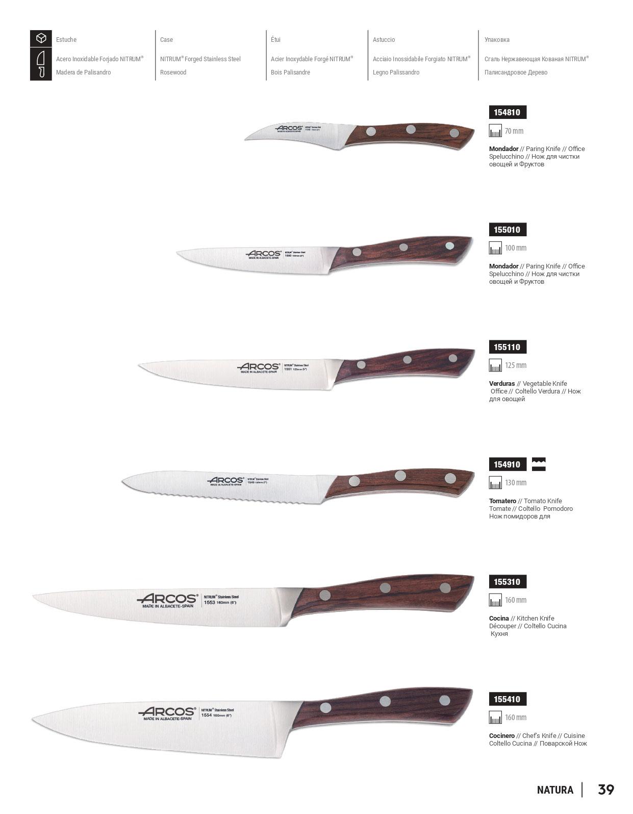 Cuchillos cocina. Hoja acero inoxiable NITRUM. Mango de madera de palisandro.