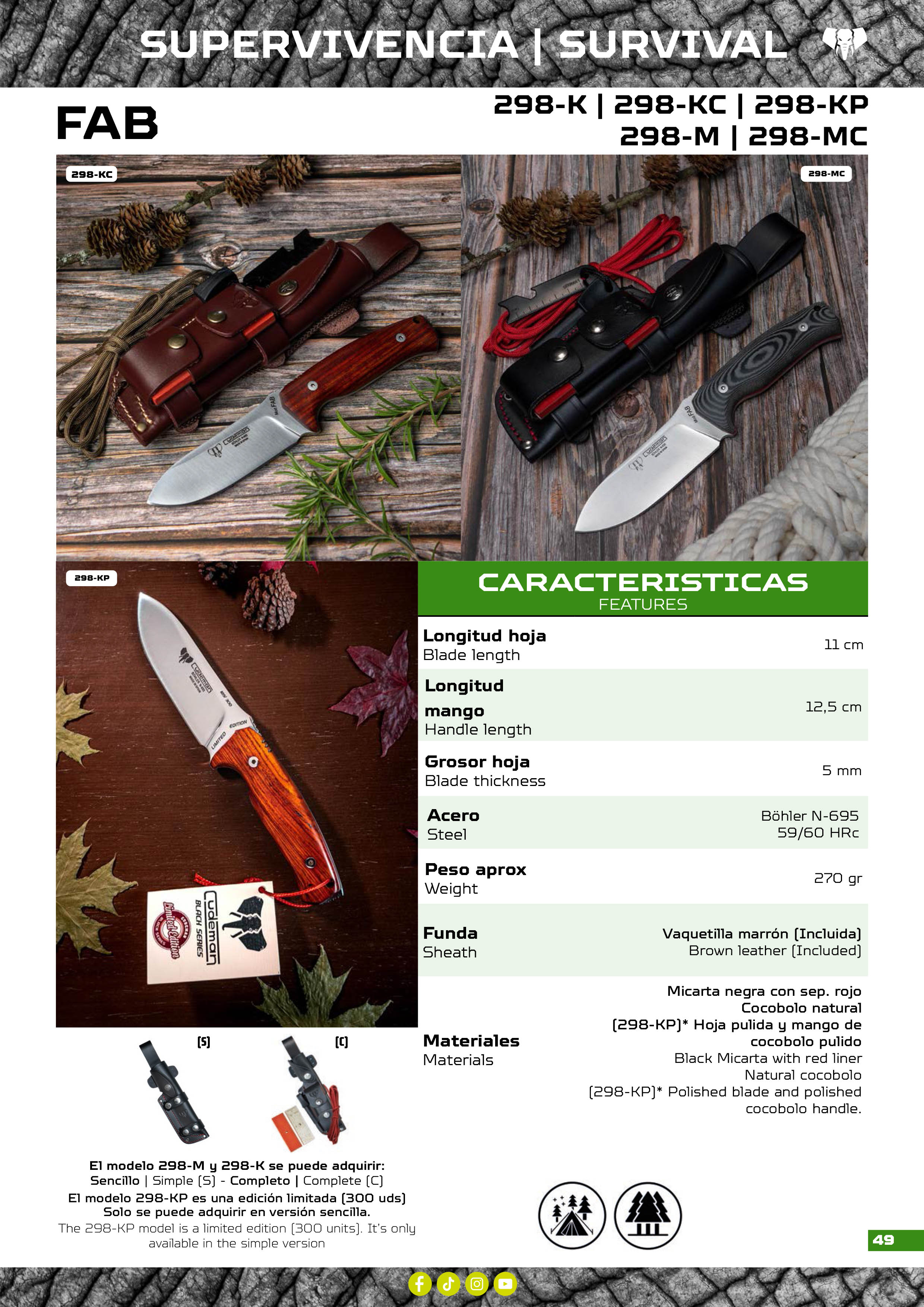 Cuchillos de supervivencia FAB I, fabricados con acero Böhler N695 / MOVA.