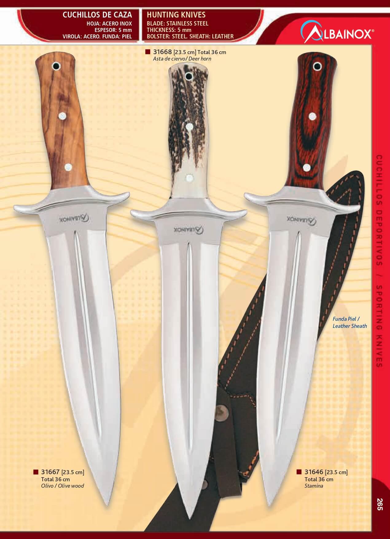 Hoja de acero inox.440. Espesor 5mm, funda de piel.