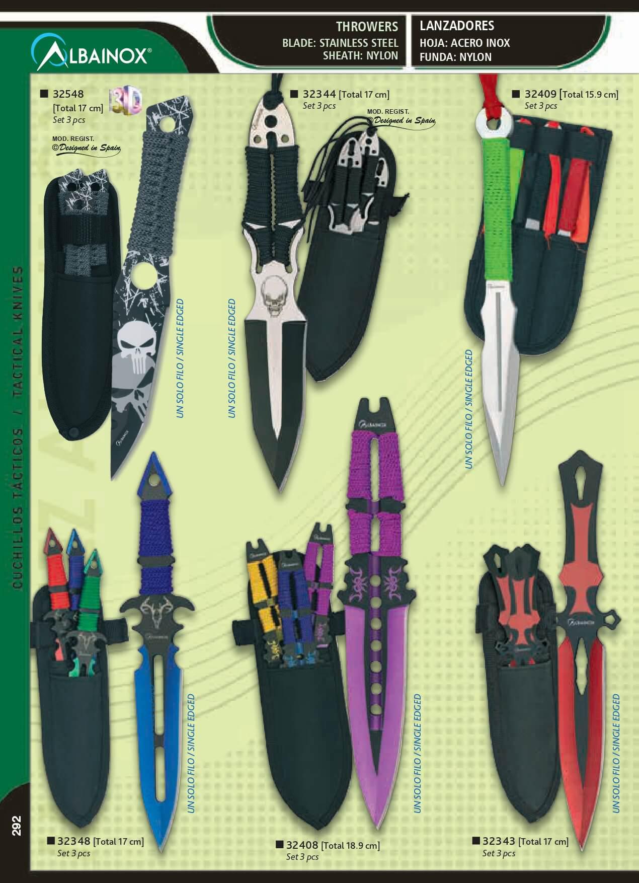 Set de tres cuchillos lanzadores en verde, rojo y negro de Albain...