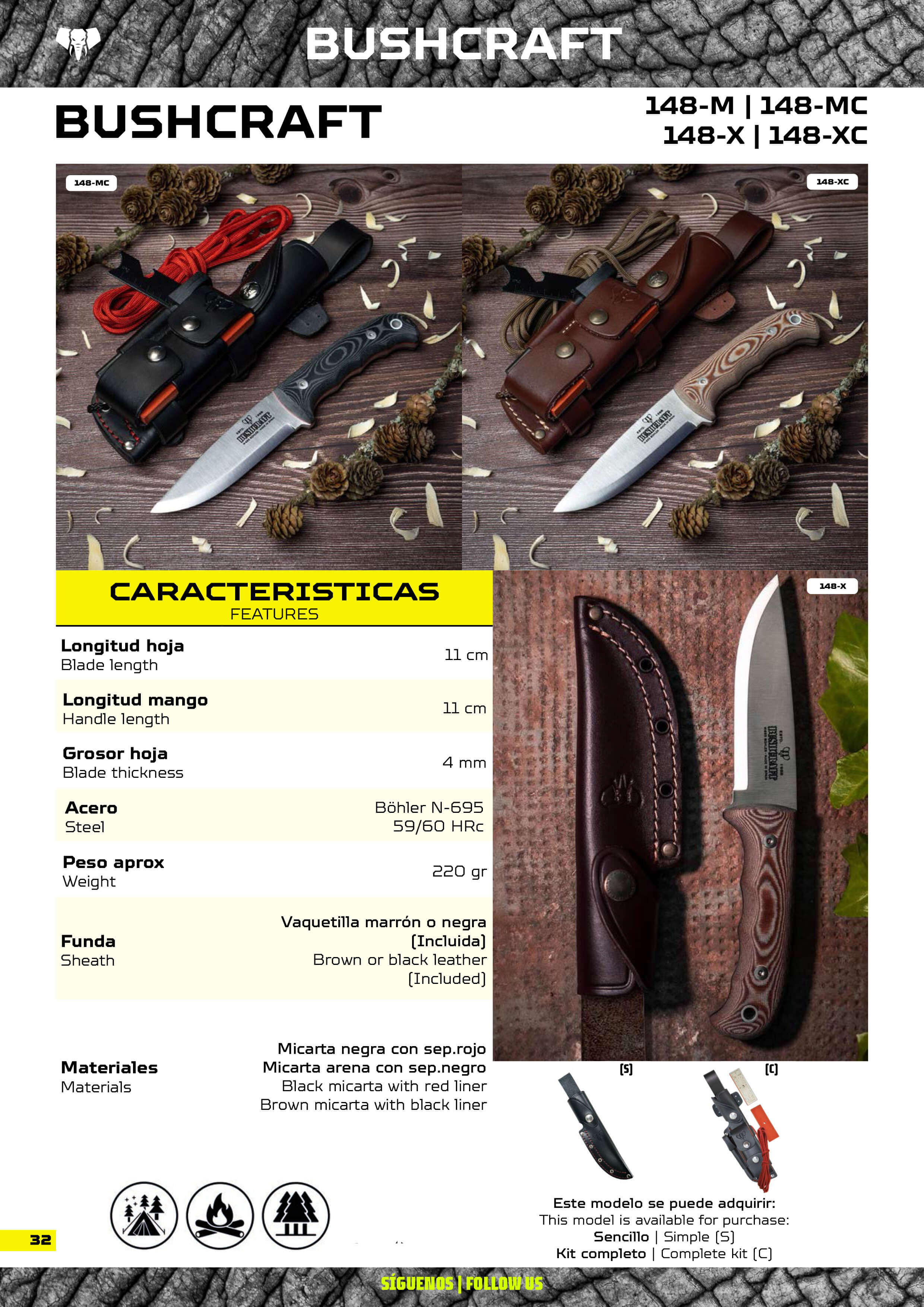 Cuchillos supervivencia con funda de cuero