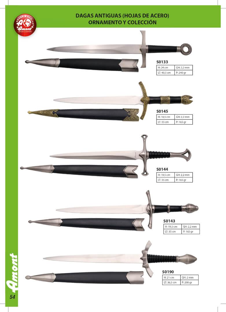 Dagas antiguas con hojas de acero, de ornamento y colección.
