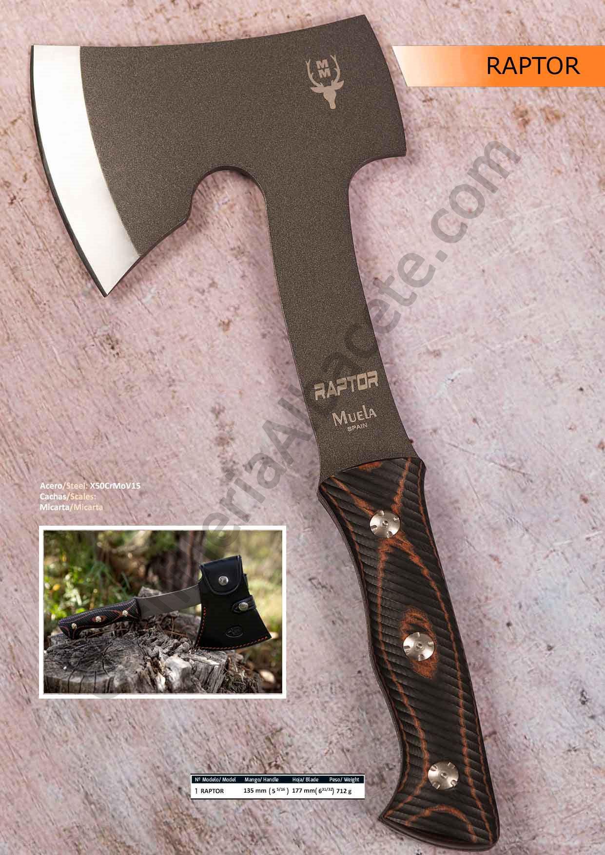 Hoja en acero Molibdeno Vanadio con recubrimiento antifricción PTFE. Cachas de micarta texturizada. Longitud total 31,5 cm. Espesor de la hoja: 5,5 mm. Peso 690 gr.