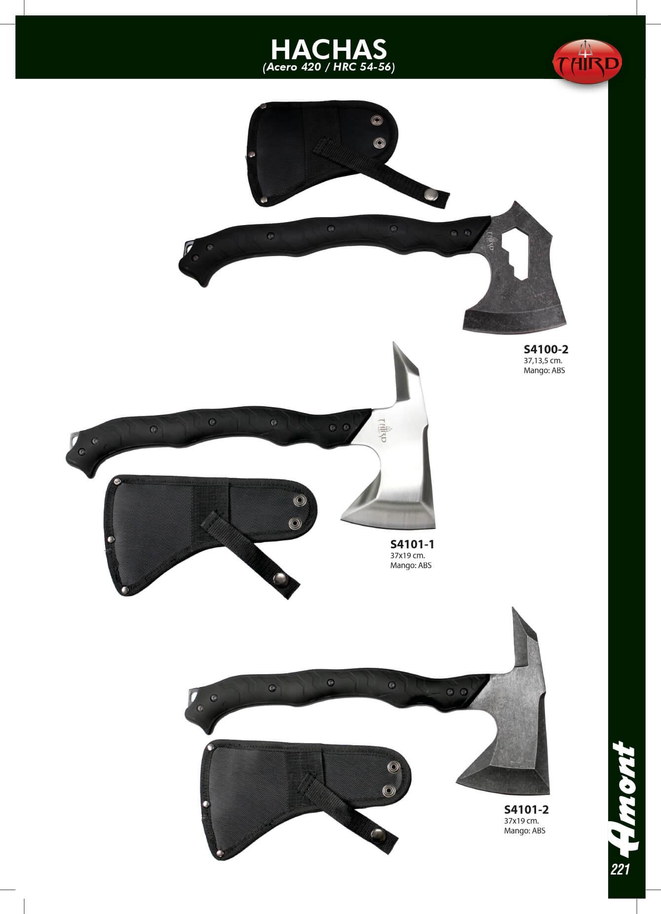 Hachas tácticas Hoja de acero 420. Dureza 54-56 HRC. Mango de ABS S4100-2Medidas: 37x13,5 cm. S4101 Medida: 37x19 cm.