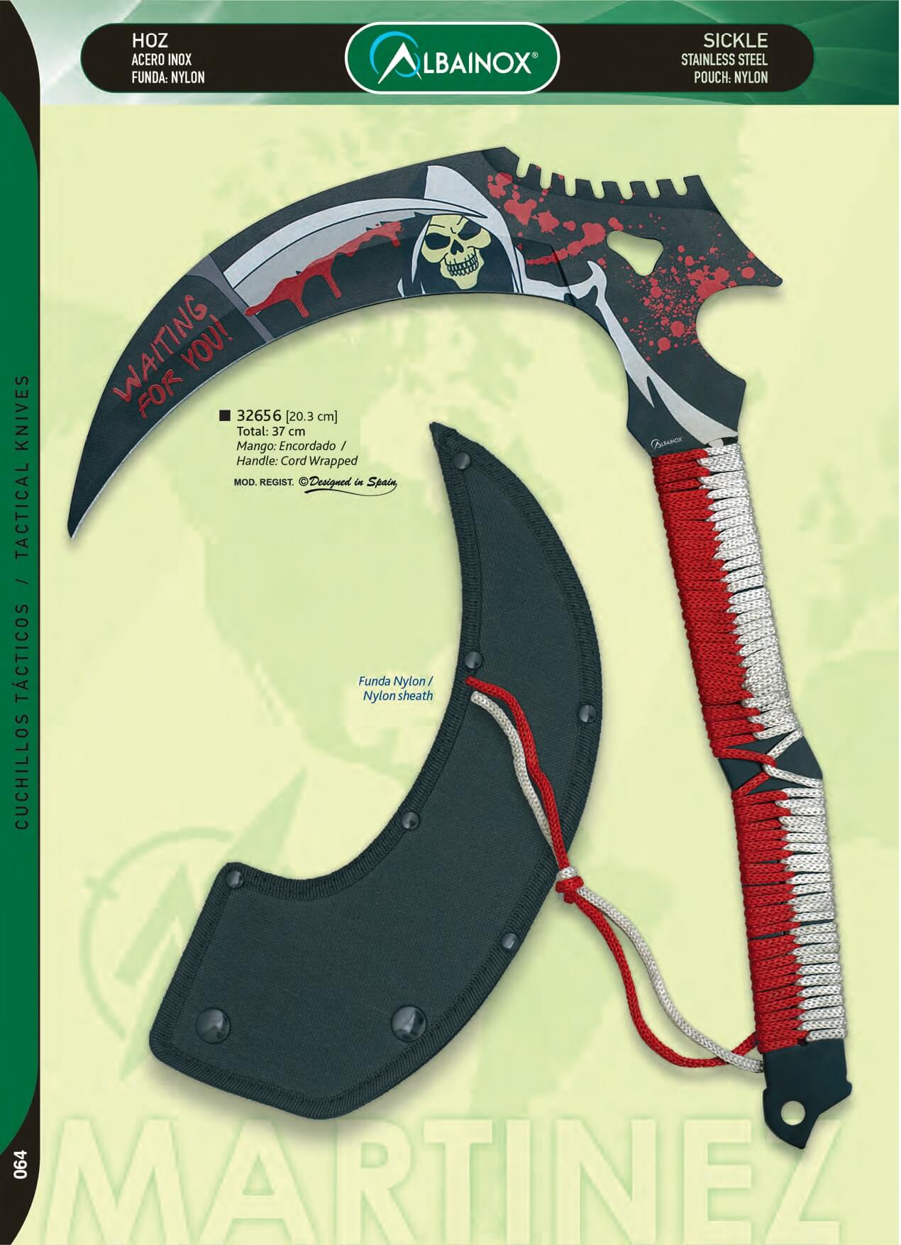 Hoz de 37 cm con mango encordado rojo y blanco