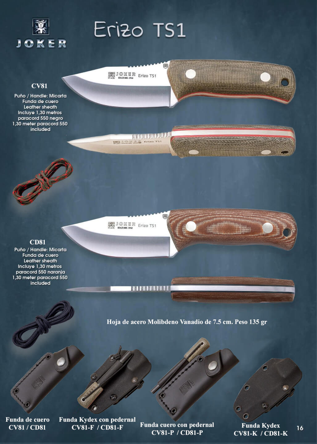 Cuchillo enterizo Erizo TS1 con mango de micarta. Hoja de acero Böhler N695 de 7.5 cm. Con 1.3 metros de cuerda paracord 550.