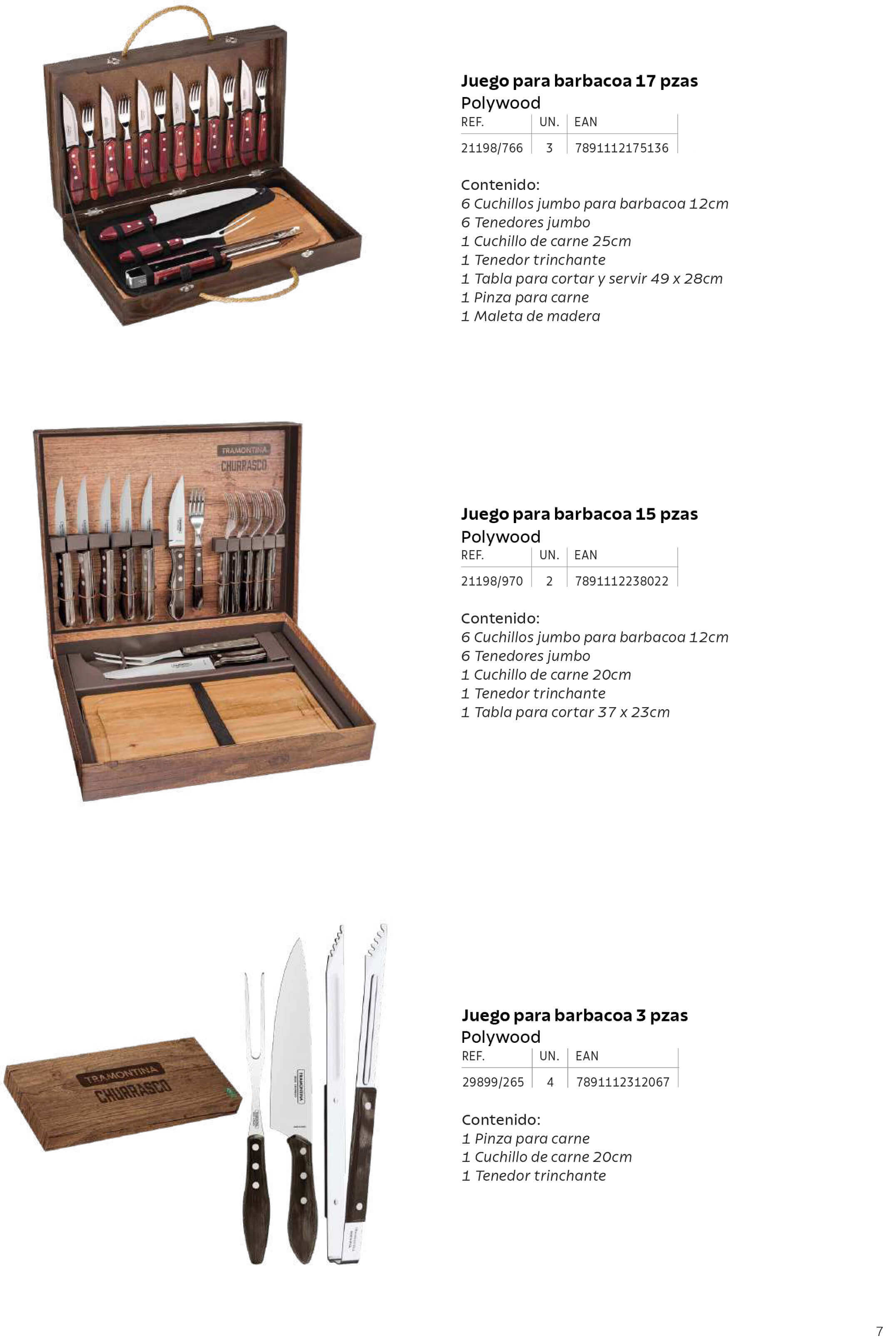 Juegos para barbacoa con 17, 15 y 3 piezas. Incluyen los cuchillos. Entre ellos, cuchillos para barbacoa, tenedores, o tablas para cortar. Con estos sets, tendrás todo lo necesario para tu barbacoa y podrás disfrutar con amigos o familiares de un gran banquete.