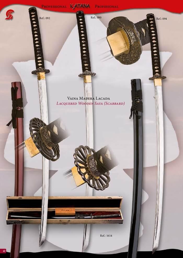 Katanas con puño de madera forrado con piel auténtica de raya.